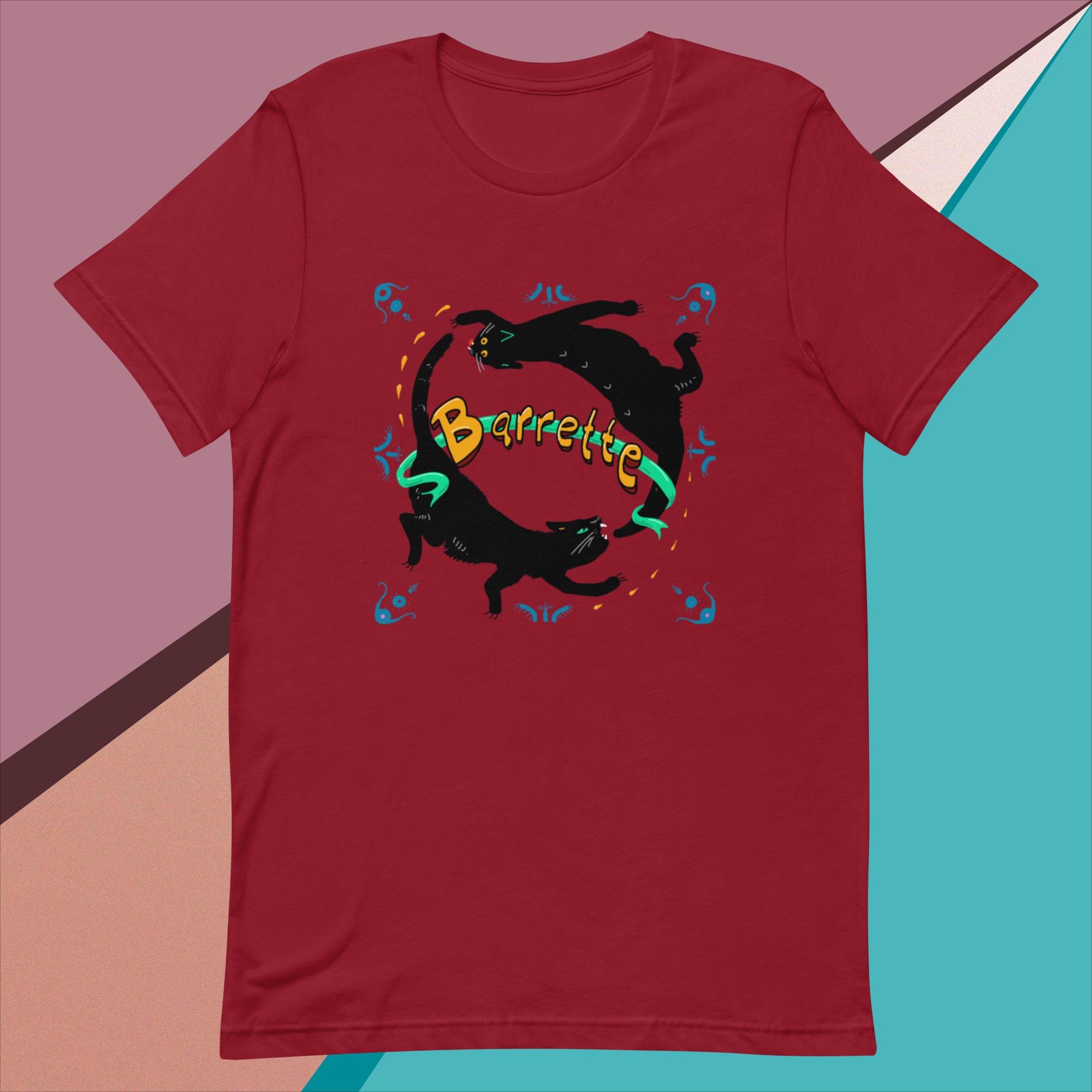 Barrette Logo version 1! This shirt comes in a variety of lighter colors (the black cats don't translate on dark t's).